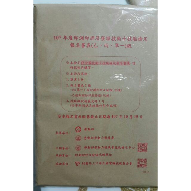 107年技能檢定 乙級報名表 蝦皮購物