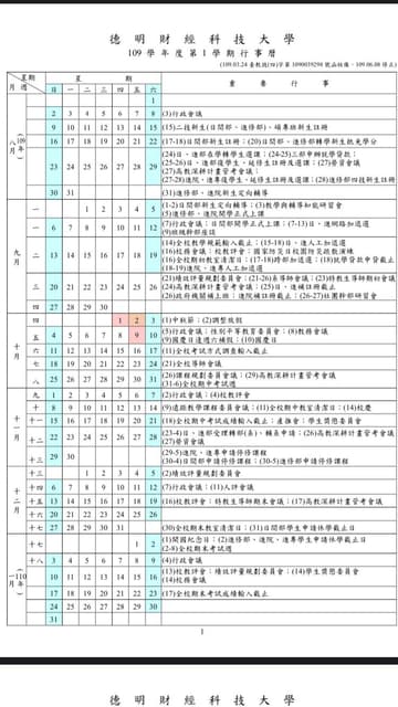109學年度上學期行事曆 德明財經科大板 Dcard