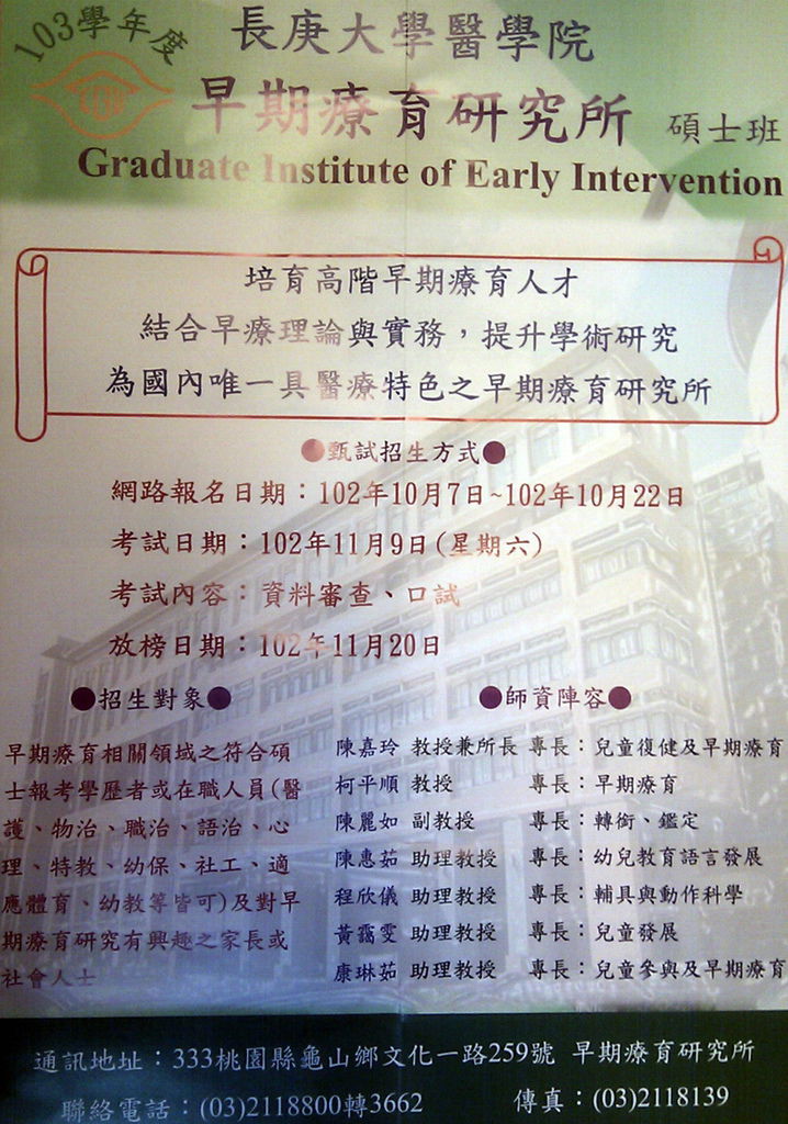 訊息 長庚大學早期療育研究所招生訊息 花蓮縣諮商心理師公會 痞客邦